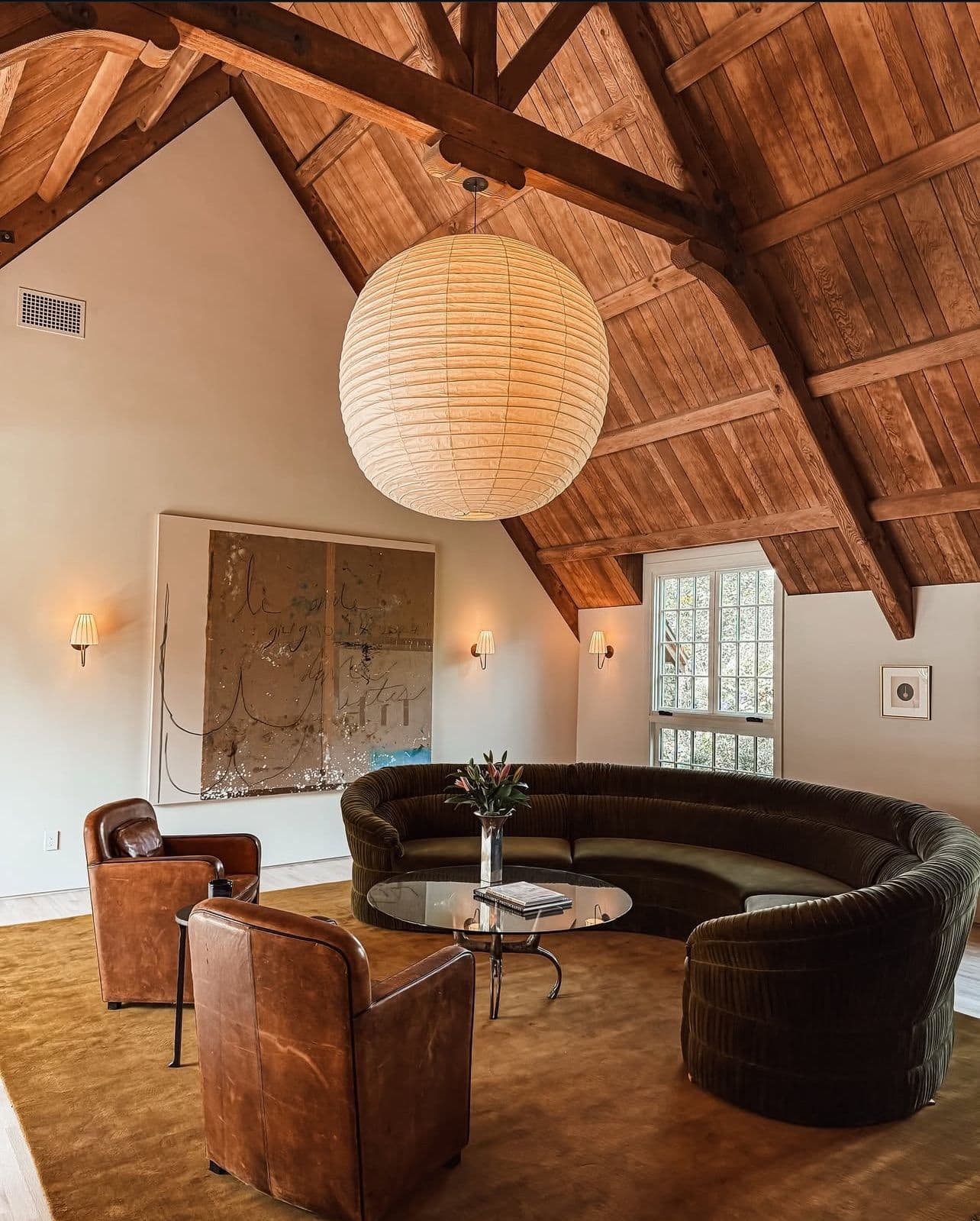The house reveals itself slowly, with the kind of quiet confidence that comes from restraint. At first glance, the vast pitched ceiling commands attention: beams of warm wood arching high, their sculptural lines forming both shelter and statement. Nothing interrupts this architecture no clutter, no ornament, only space breathing in its purest form.